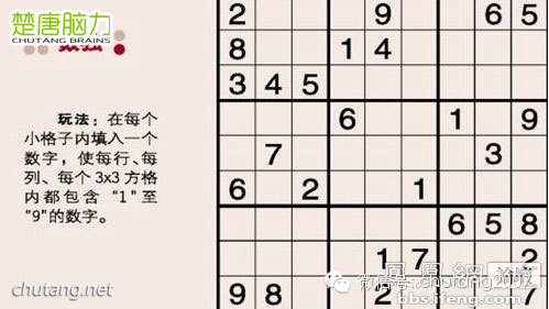 数独顾名思义——每个数字只能出现一次,是一种源自18世纪末的瑞士,后在美国发展、并在日本得以发扬光大的数字谜题。数独盘面是个九宫,每一宫又分为九个小格。在这八十一格中给出一定的已知数字和解题条件,利用逻辑和推理,在其他的空格上填入1-9的数字。使1-9每个数字在每一行、每一列和每一宫中都只出现一次。这种游戏全面考验做题者观察能力和推理能力,虽然玩法简单,但数字排列方式却千变万化,所以不少教育者认为数独是训练头脑的绝佳方式。